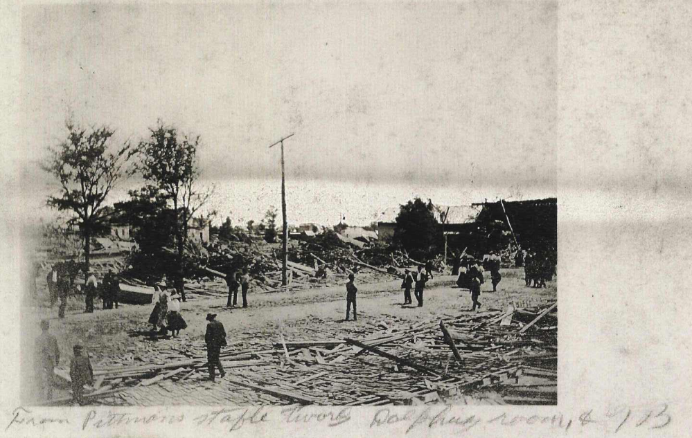 The Bruning Grocery store near the shore of Lake Pontchartrain inundated by four feet of water following the 1909 hurricane.