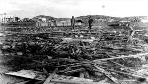 Downtown was in flames. Hundreds were trapped in collapsed buildings and hospitals were overwhelmed with the flood of wounded that came in. The streets were filled with rubble. The sky was lit up by vivid lightning. A torrential downpour followed the tornado and helped to put out the fires that had broken out across the ruined city. The temperature plummeted in the days following the tornado, with rescuers working through temperatures in the 30’s. On the 12th, a cold rain changed over to snow, and eventually a three inch blanket of snow covered the ruins. 107 people died in Woodward alone and half the city was destroyed.
