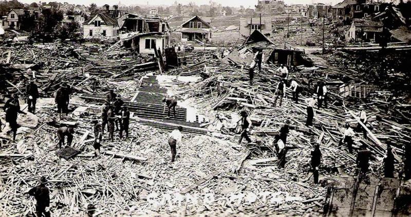 The wreckage of the Grand Hotel in Fergus Falls. 35 people died here.