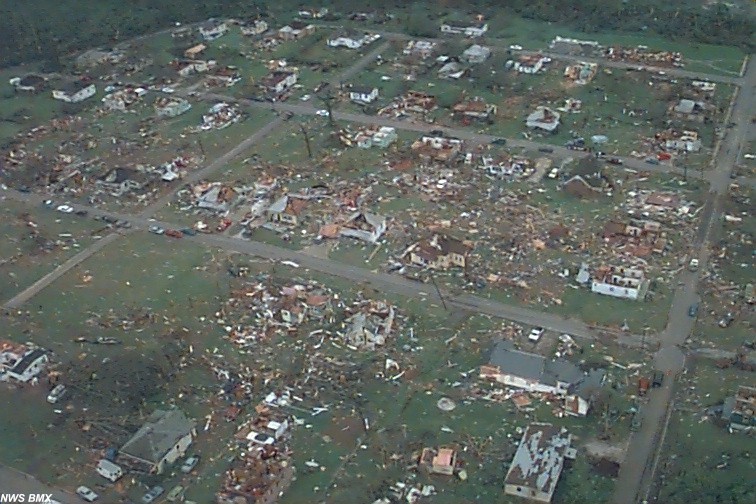 Aerial view of the destruction in the Oak Grove/Rock Creek area. Credit: NOAA