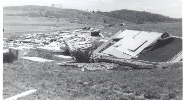 This anchored home was nearly swept away. Credit: sciotoville.org