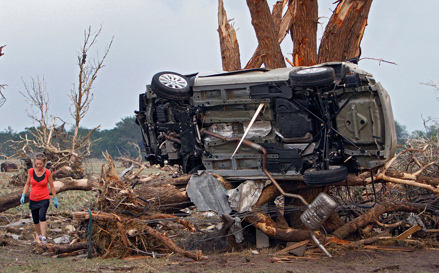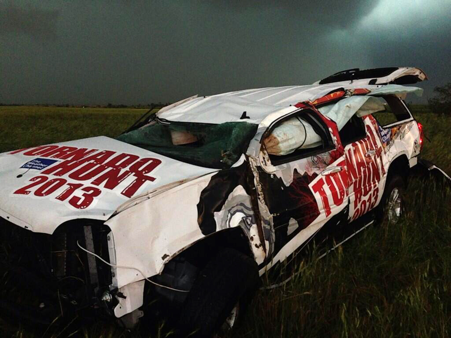 The SUV of Mike Bettes’ Tornado Hunt chase team after it was thrown 200 yards by the tornado. Everyone inside miraculously survived. Others weren’t so lucky.