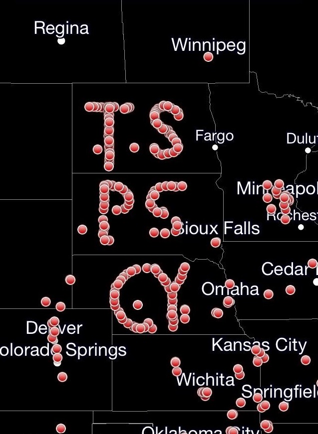 A tribute made by chasers aligning their GPS transponders to spell out the initials of Tim Samaras and his team.