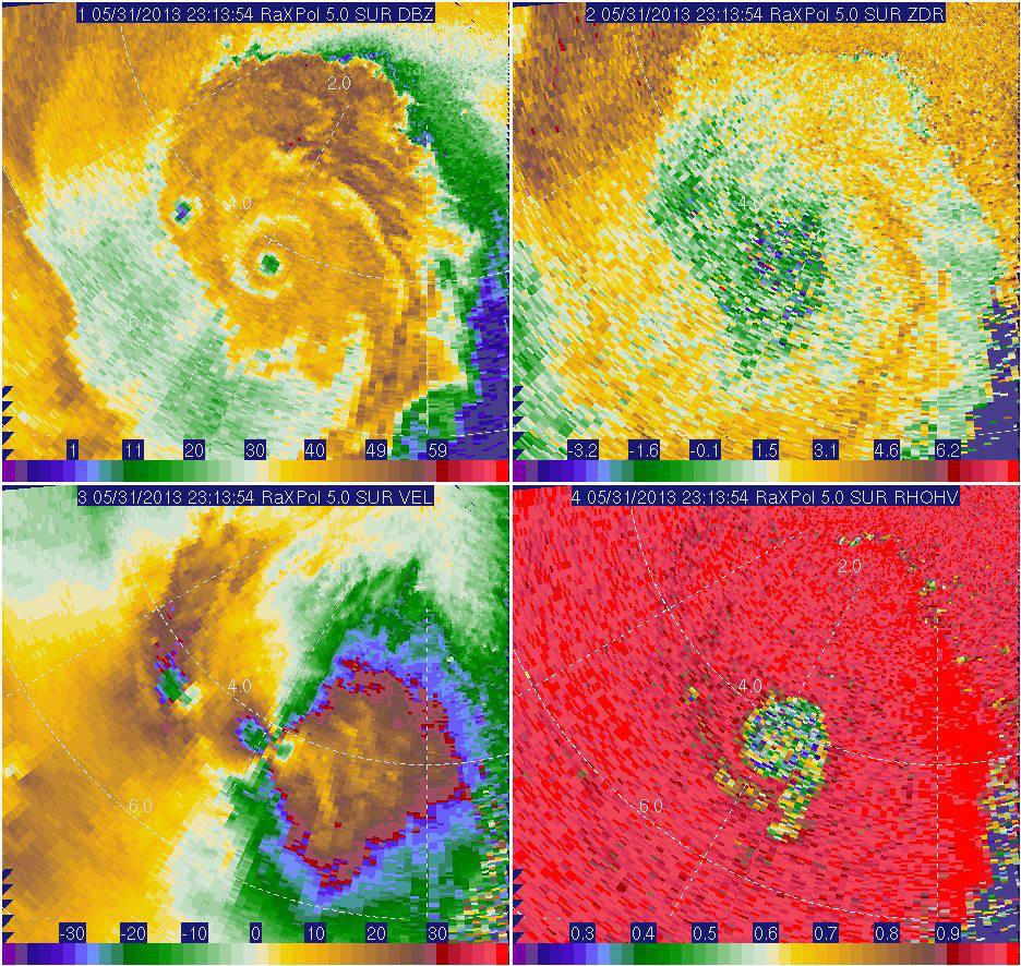 An image from the University of Oklahoma’s RaXPol Doppler Radar from when the storm was near its peak. Data from this radar was used to determine the tornado’s intensity.
