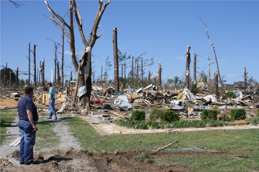 Considerable debate continues over the final rating of the tornado, particularly the damage at the Chastain Manor apartments as well as in the Pleasant Grove area. One of the three NWS survey teams rated the tornado EF5. The other two, as well as FEMA’s survey team, rated it EF4 due to questions about construction and details of the damage. For example, in the most extreme damage area at Chastain Manor, an understory of the apartment complex, which was only partially above ground, was not swept away. Meanwhile, the clubhouse, while made of brick and built to the standards of a home, had few interior walls. The controversial rating of this tornado as well as two others in Oklahoma a month later sparked significant discussion on what is and is not EF5 damage and how the Enhanced Fujita Scale is being applied.