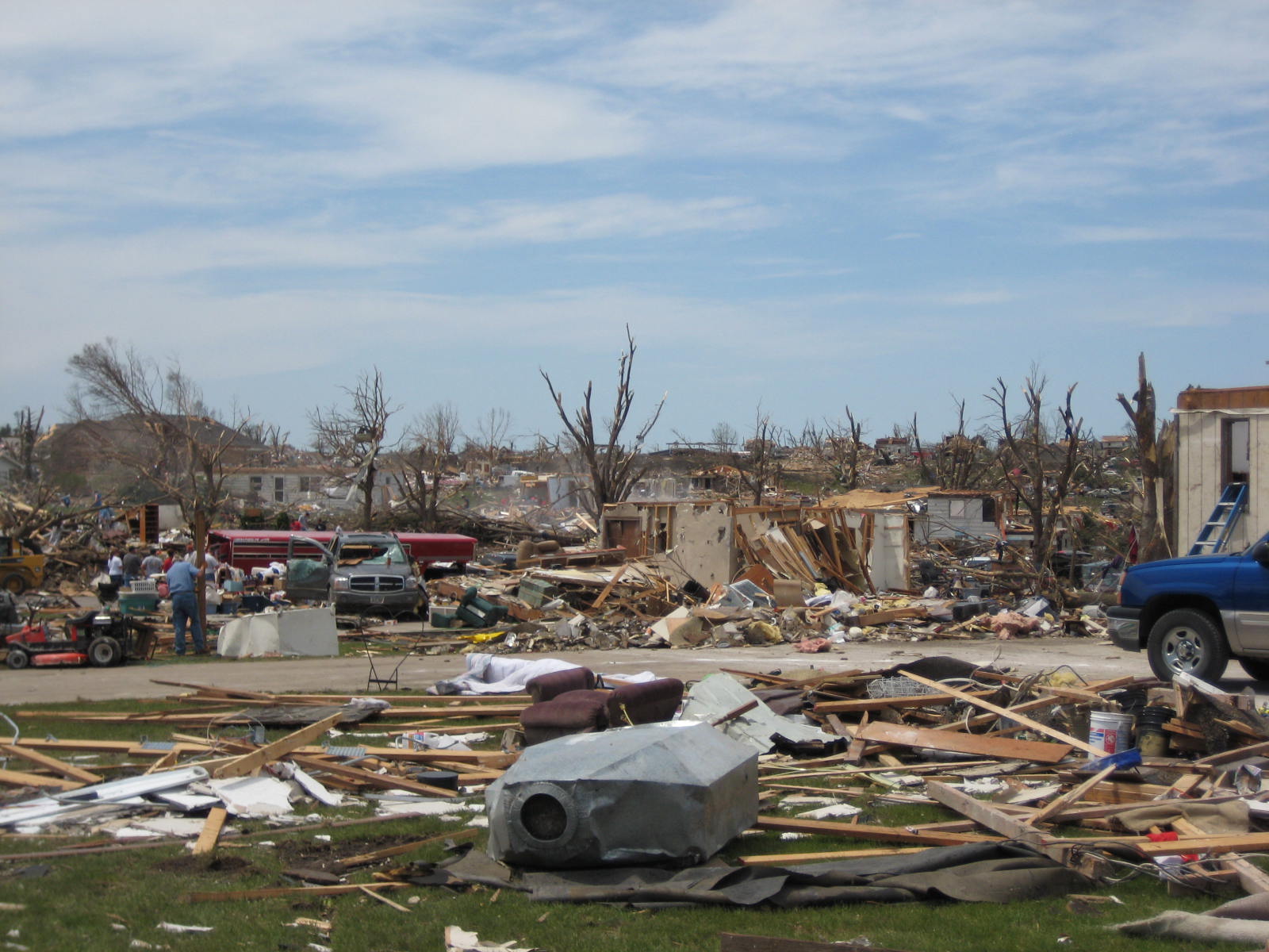 Debris removal took months. In all, an estimated 400,000 cubic yards of debris was removed. There was so much debris that the main highway through Greensburg (US 54/400) was closed for a month and the military was called upon to assist. Following the tornado, Greensburg was rebuilt as a “green city” with all buildings built to LEED platinum standards, the first such town in the US to do so. However, the town’s population has yet to recover. Its population at the 2010 census was roughly half of what it was at the 2000 census.