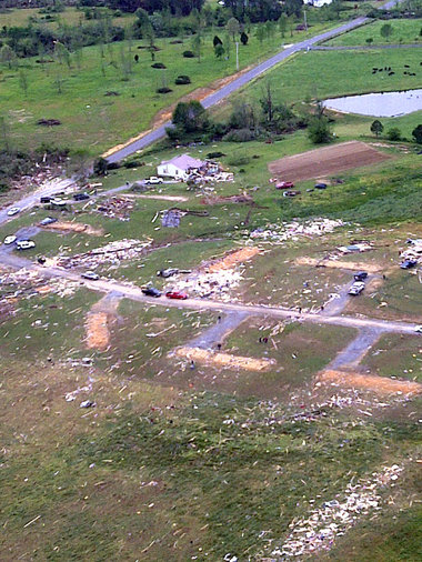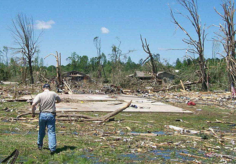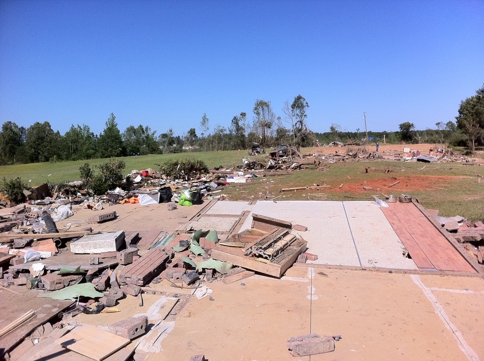 The Hackleburg tornado was one of the most powerful tornadoes ever recorded. It had arguably the most expansive swath of F5/EF5 damage ever observed. It maintained that incredible intensity for miles at a time (up to five miles at one point). At its peak in the Oak Grove area northeast of Phil Campbell, it was a mile and a quarter wide. It was the deadliest and most devastating tornado in Alabama history, a long and terrible history (though the latter title was gone by the time the tornado lifted, courtesy of the Tuscaloosa tornado). 72 people died, 23 more than any other Alabama tornado. More than half of these were in the Hackleburg and Phil Campbell areas. It was the deadliest US tornado in nearly 56 years. Another 145 people were injured and hundreds of homes were completely destroyed. Two towns and a rural village were virtually wiped from the face of the earth. And as the Hackleburg tornado made its long and terrible journey across the Alabama countryside, more scenes of devastation played out all around it.