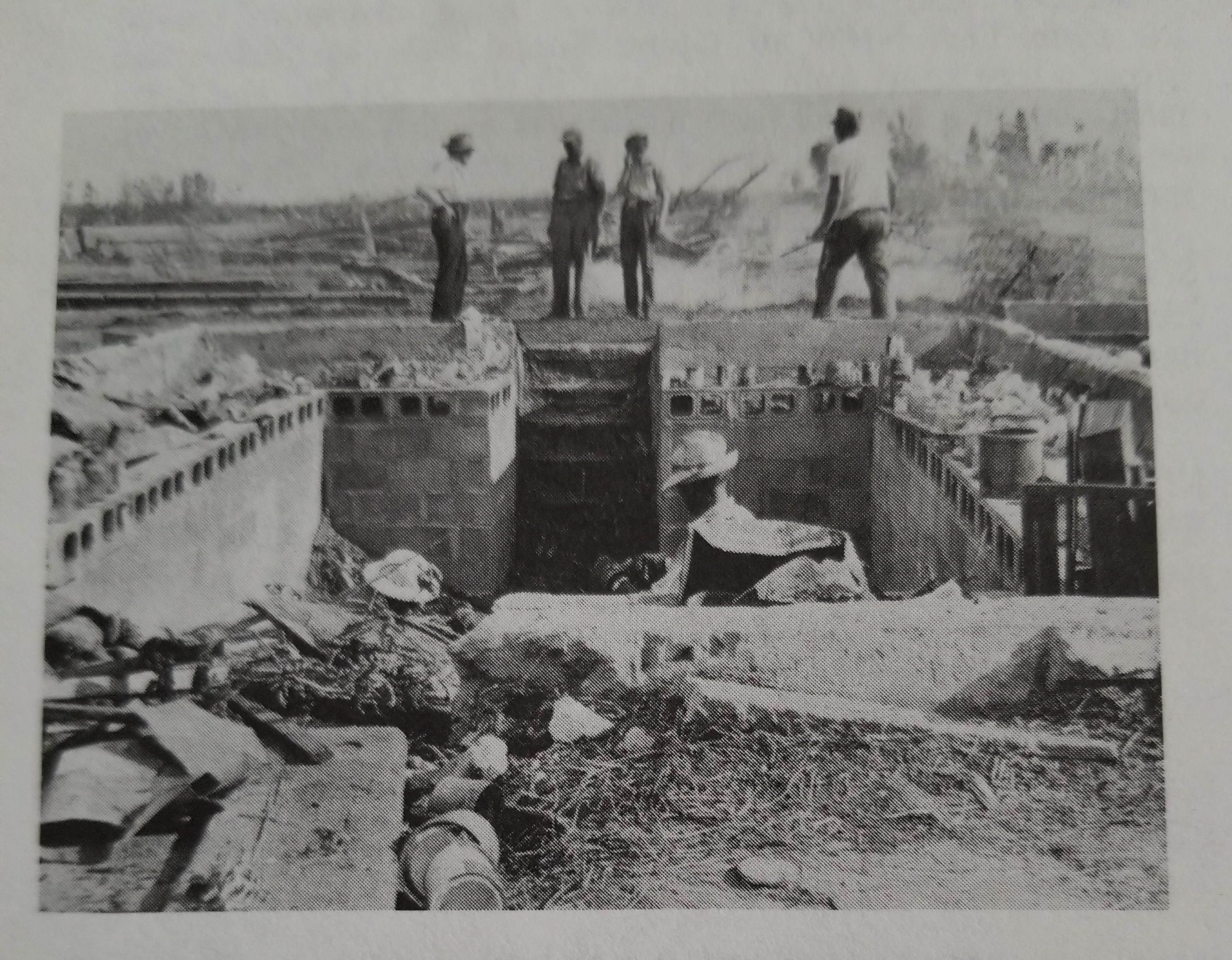This well-built brick home was completely swept away, the debris thrown forty yards away.