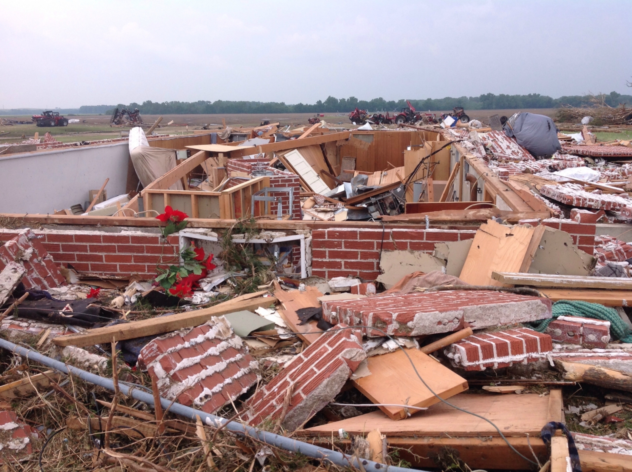 - Rochelle, Illinois – April 9, 2015 – Several well-anchored homes were swept away with extensive scouring in rural neighborhoods near Rochelle. Adjacent bushes were not stripped, as would be expected with an EF5 tornado, so the NWS survey team elected to conservatively rate the tornado EF4. However, the yards of some of the swept away homes were stripped of grass and one had its concrete walkway displaced a few inches. More homes were swept away on nearby farms and a reinforced concrete silo was obliterated. This tornado was probably EF5 and will eventually be added to this list, but I will need corroborating support from an expert before that can happen.